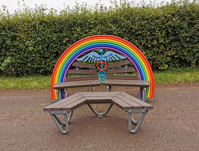 The benches incorporate three features, each with their own special meaning for staff. The angel’s wings are to mark their compassion and hard work. The heart is to honour the support and dedication of staff, and the rainbow is to provide hope to the people of Tayside affected by the pandemic.
